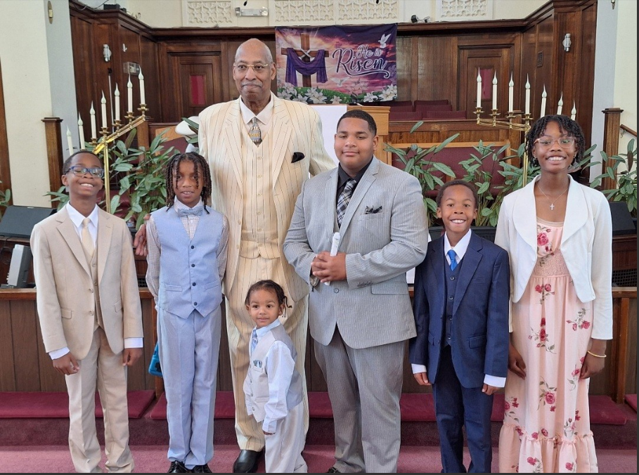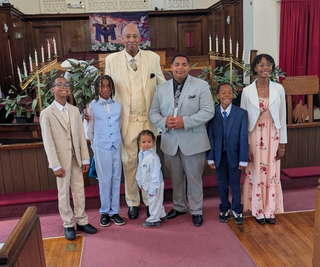 ALLEN CHAPEL RECOGNIZES ITS VETERANS 2025 Pictured from left, Brothers Will Hills - Air Force, Joesph Williams - Air Force, Gregory Thomas - Army; Sister Annie Jones, Pastor G.R. Patterson, Sister Angela Theroith-Fraser; Rev. Monroe Mabon - Army, Brothers Woodrow Hicks - Marine Corps and Willie Wilson - Air Force.